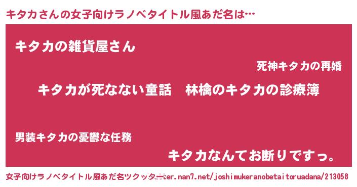 | ヒーロー風カッコイイあだ名 | 『仮面キタダー』『ウルトラキタカマン』 |