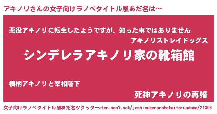 | 意味不明あだ名 | 『住所不定無職アキノリ(47歳)』 |