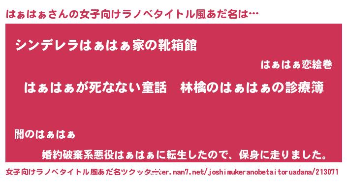 | 意味不明あだ名 | 『住所不定無職はぁはぁ(93歳)』 |