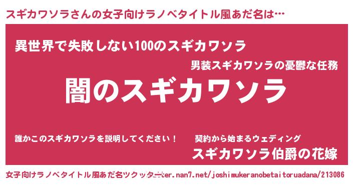 | 男性向けラノベタイトル風あだ名 | 『Re:スギカワソラから始める異世界生活』 |