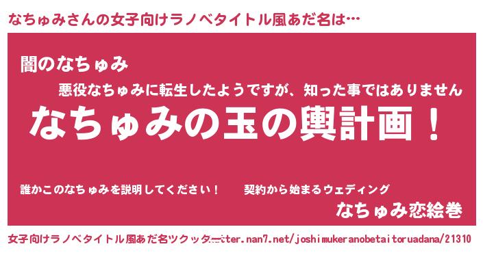 | ヒーロー風カッコイイあだ名 | 『サイバー戦士ナチュミ』『仮面ナチダー』 |
