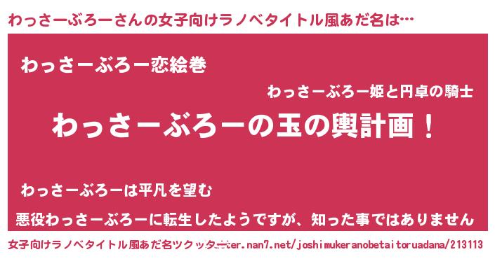 | 伝説のあだ名 | 『救世主となる錬金術士わっさーぶろー』 |