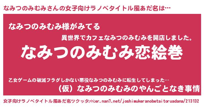 | 男性向けラノベタイトル風あだ名 | 『ノーゲーム・ノーナミツノミムミ』 |