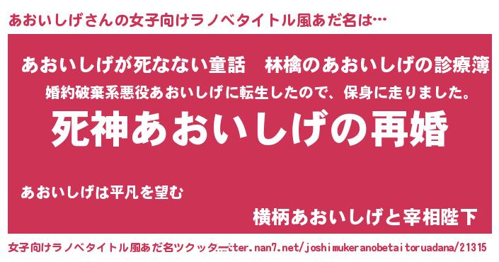 | 胡散臭い通販商品みたいなあだ名 | 『モンドセレクションを受賞したマグネット磁石…その名も「あおいしげ」』 |