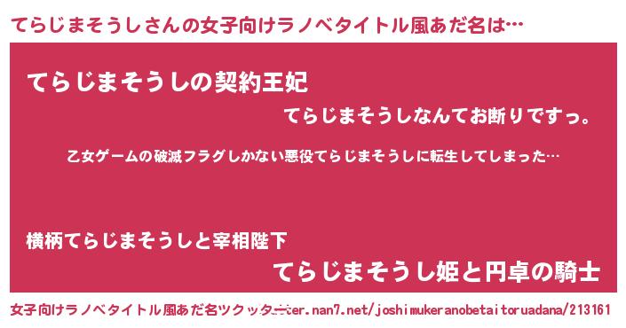 | 男性向けラノベタイトル風あだ名 | 『この素晴らしい世界にてらじまそうしを!』 |