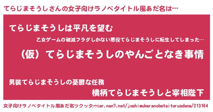 | 男性向けラノベタイトル風あだ名 | 『てらじまそうしの憂鬱』 |