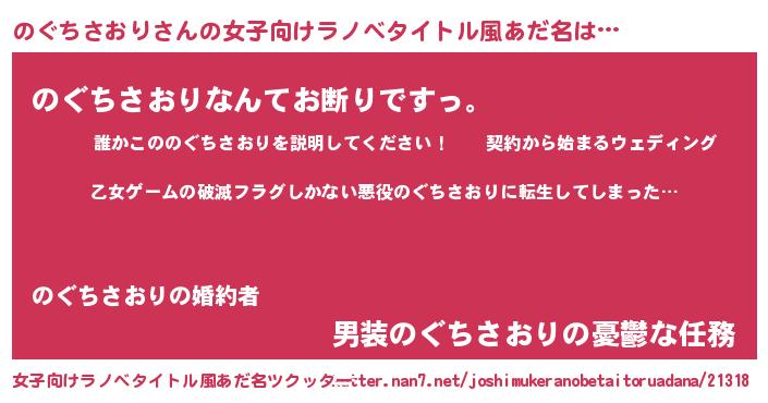 | 男性向けラノベタイトル風あだ名 | 『魔弾の王とのぐちさおり』 |
