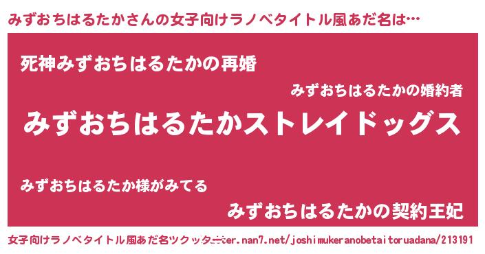 | 意味不明あだ名 | 『自称みずおちはるたか』 |