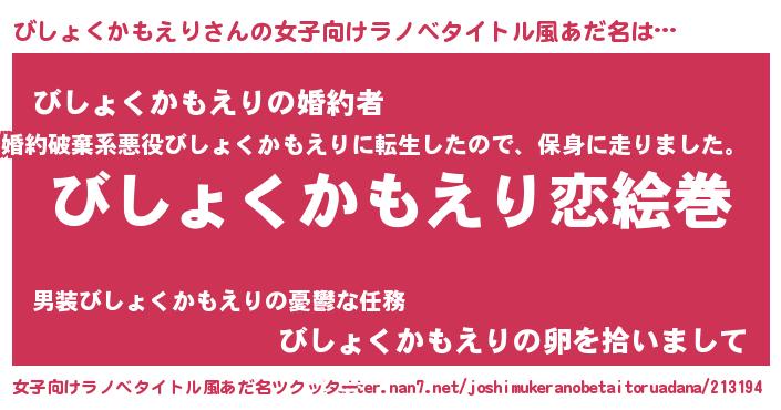 | 欧米人風あだ名 | 『ダニエルびしょくかもえり』 |