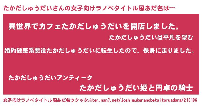 | 意味不明あだ名 | 『しいたけ科たかだしゅうだい属』 |