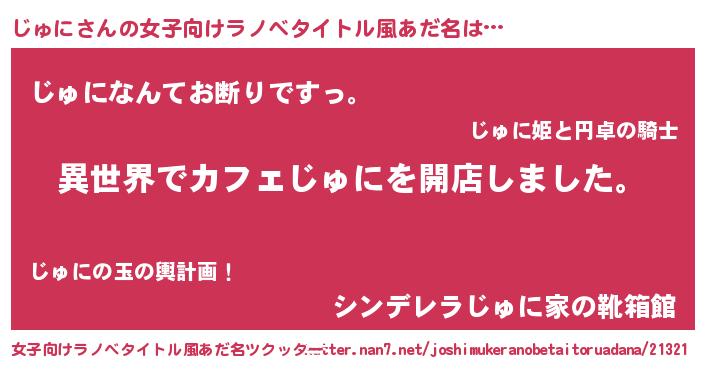 | 意味不明あだ名 | 『永久保存じゅに』『自称じゅに』 |