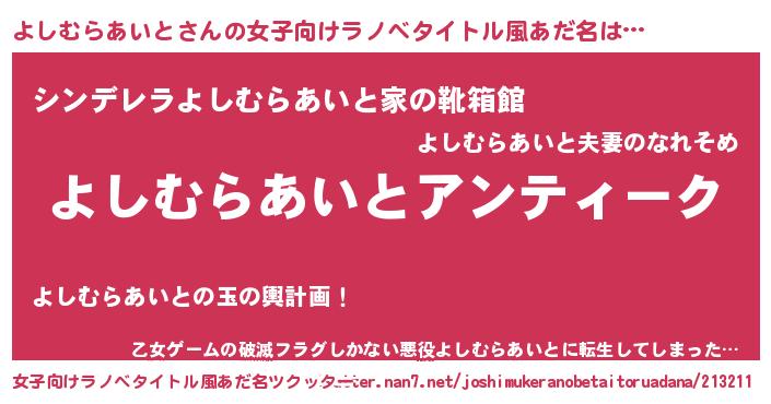 | 肩書あだ名 | 『よしむらあいと総統』 |