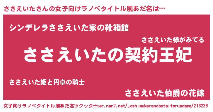| 男性向けラノベタイトル風あだ名 | 『ささえいたという概念が存在しない退屈な世界 』 |
