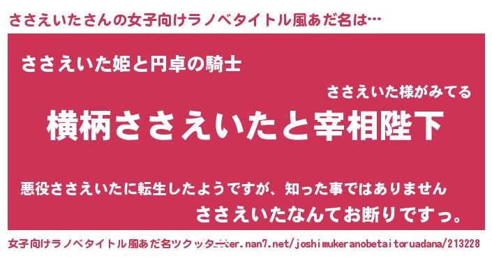 | 男性向けラノベタイトル風あだ名 | 『ささえいたに滅ぼされるだけの簡単なお仕事です』 |