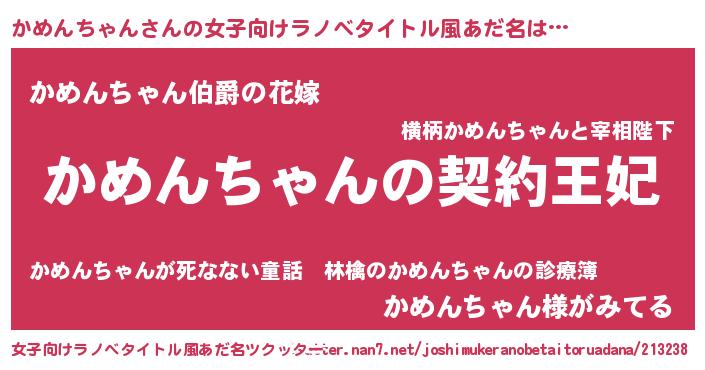 | 男性向けラノベタイトル風あだ名 | 『誰もが恐れるあのかめんちゃんが、ぼくの専属メイドになるようです。』 |