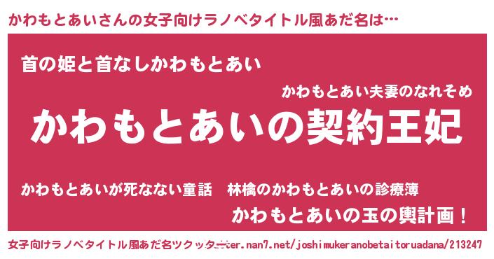 | ヘコむあだ名 | 『かわもとあい(笑)』『酢こんぶ』 |