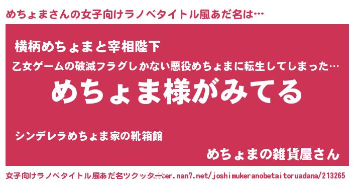 | 男性向けラノベタイトル風あだ名 | 『めちょまの嫁は女の子じゃないと思った?』 |