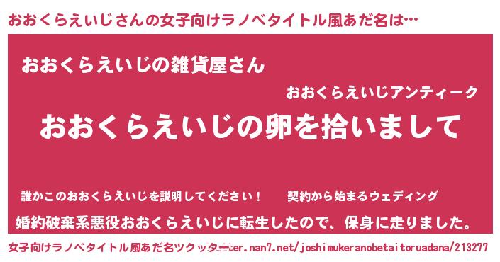 | 男性向けラノベタイトル風あだ名 | 『おおくらえいじの嫁は女の子じゃないと思った?』 |