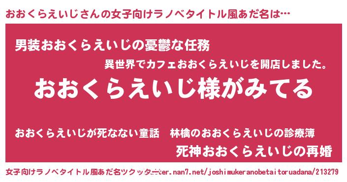 | 男性向けラノベタイトル風あだ名 | 『おおくらえいじの嫁は女の子じゃないと思った?』 |