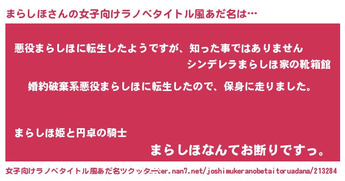| 男性向けラノベタイトル風あだ名 | 『マラシホスレイヤー』『緋弾のマラシホ』 |