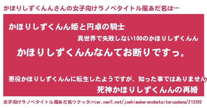 | 胡散臭い通販商品みたいなあだ名 | 『ガンによく効く高麗人参…その名も「かほりしずくんん」』 |