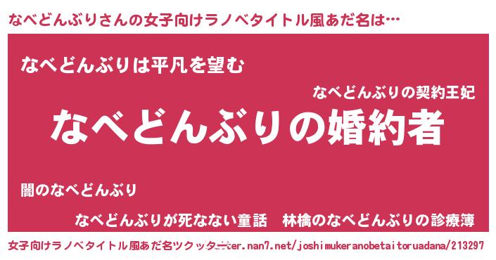 | ファンタジー風あだ名 | 『エターナルナベドンブリー』 |