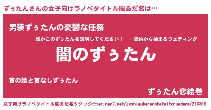 | 男性向けラノベタイトル風あだ名 | 『Re:ずぅたんから始める異世界生活』 |
