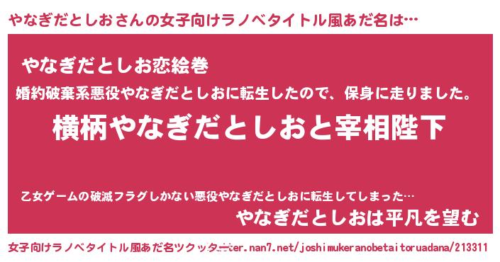 | 男性向けラノベタイトル風あだ名 | 『やなぎだとしおに滅ぼされるだけの簡単なお仕事です』 |