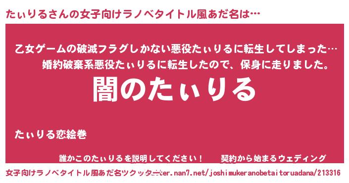 | 男性向けラノベタイトル風あだ名 | 『Re:たぃりるから始める異世界生活』 |