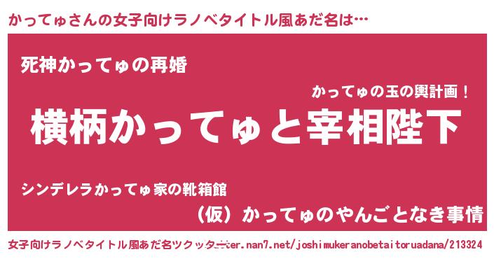 | 男性向けラノベタイトル風あだ名 | 『かってゅに滅ぼされるだけの簡単なお仕事です』 |