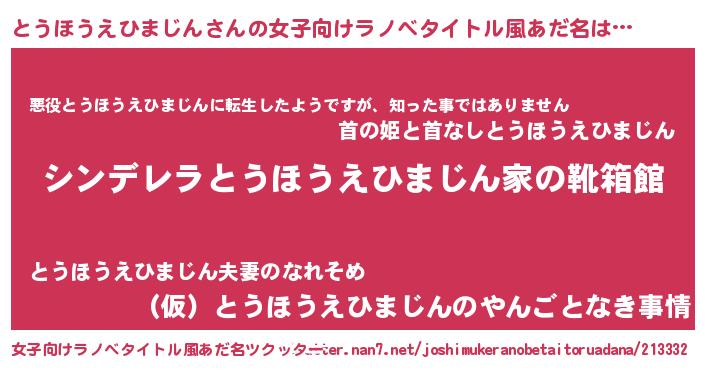 | 意味不明あだ名 | 『住所不定無職とうほうえひまじん(10歳)』 |