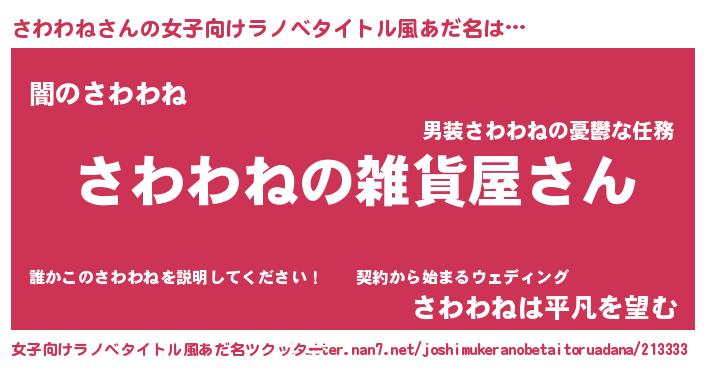 | 男性向けラノベタイトル風あだ名 | 『やはりさわわねの青春ラブコメはまちがっている 』 |