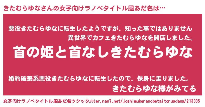 | 意味不明あだ名 | 『住所不定無職きたむらゆな(47歳)』 |
