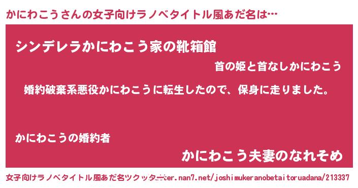 | 男性向けラノベタイトル風あだ名 | 『カニワコウスレイヤー』 |