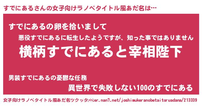 | 男性向けラノベタイトル風あだ名 | 『すでにあるに滅ぼされるだけの簡単なお仕事です』 |