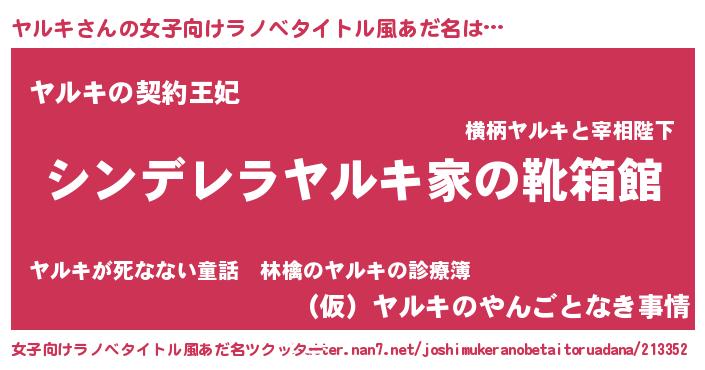 | 男性向けラノベタイトル風あだ名 | 『緋弾のヤルキ』『ヤルキの憂鬱』 |