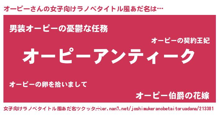 | 男性向けラノベタイトル風あだ名 | 『魔法科高校のオーピー』 |