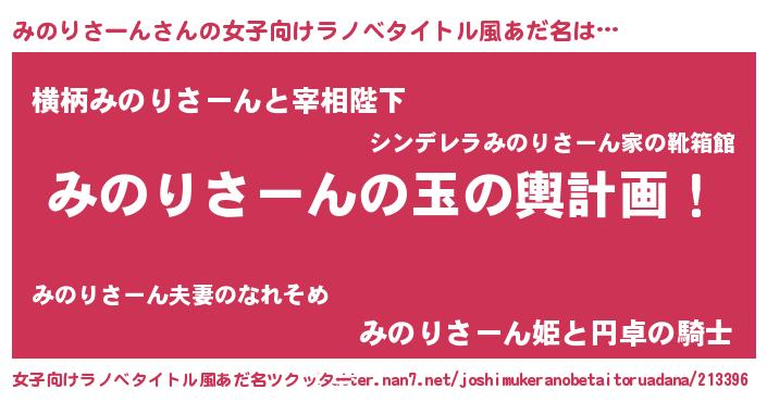 | 男性向けラノベタイトル風あだ名 | 『みのりさーん~年齢イコール彼女いない歴の魔法使い~』 |