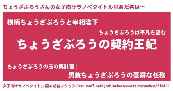 | 意味不明あだ名 | 『永久保存ちょうざぶろう』 |