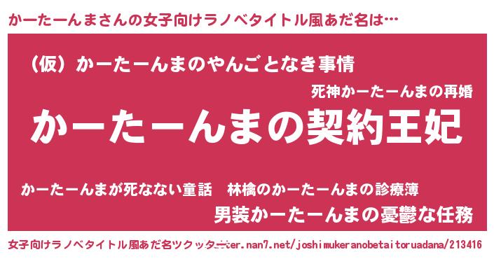 | 男性向けラノベタイトル風あだ名 | 『かーたーんまという概念が存在しない退屈な世界 』 |