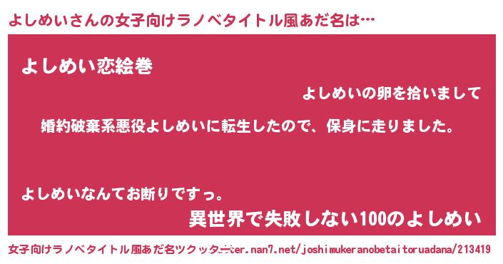 | ヘコむあだ名 | 『よしめい(苦笑)』『よしを』 |