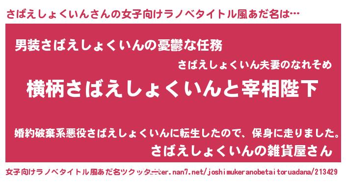 | 意味不明あだ名 | 『さばえしょくいんフォーエバー』 |