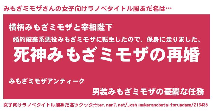 | 欧米人風あだ名 | 『ダニエルみもざミモザ』 |