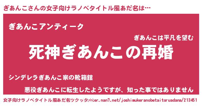 | 男性向けラノベタイトル風あだ名 | 『ノーゲーム・ノーギアンコ』 |