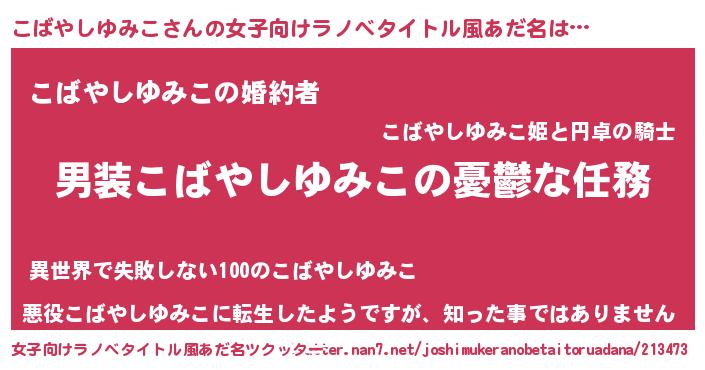 | 胡散臭い通販商品みたいなあだ名 | 『運命の人と巡り会える高級そうな壺…その名も「こばやしゆみこ」』 |