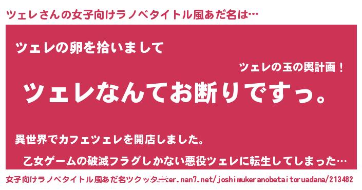 | ヘコむあだ名 | 『ツェを』『ツェレ(笑)』『なまこ酢』 |