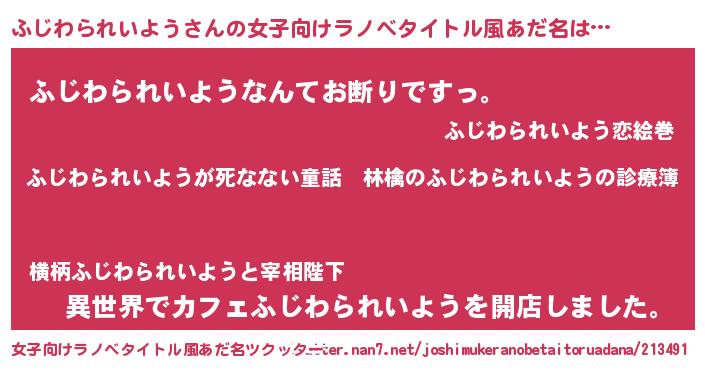 | ヘコむあだ名 | 『ふじわられいよう(遠い目)』『ふじお』 |