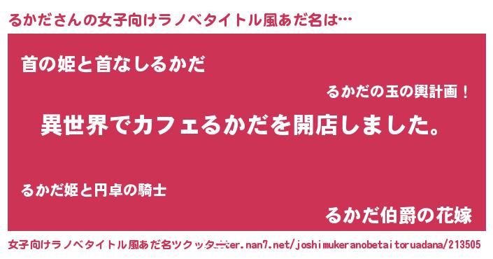 | 男性向けラノベタイトル風あだ名 | 『誰もが恐れるあのるかだが、ぼくの専属メイドになるようです。』 |