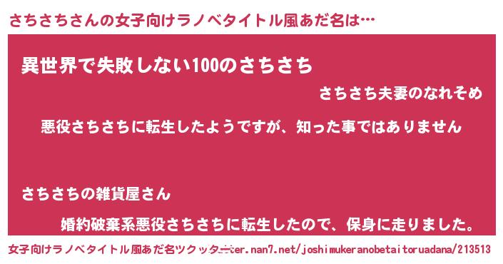 | ヒーロー風カッコイイあだ名 | 『仮面サチダー』『ネオサチサチ』 |