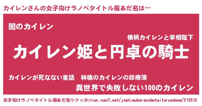 | ヘコむあだ名 | 『カイっふぃ~』『カイレン(笑)』 |